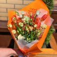 Букет из роз, эустом и тюльпанов