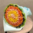 Букет ярких тюльпанов с гипсофилой