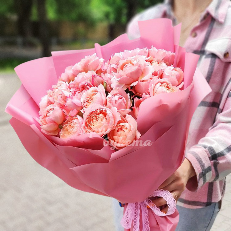 - Кустовые пионовидные розы (розовые), 9 шт.