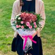 Букет гвоздик и роз с Мишкой на 14 февраля