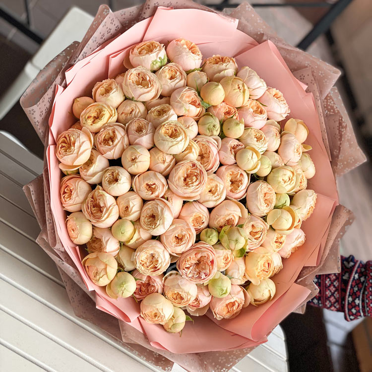 - Пионовидные розовые розы, 101 шт.