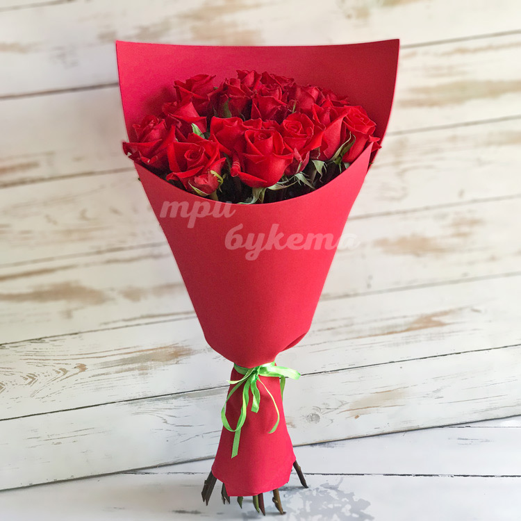 - Красные розы, 15 шт.