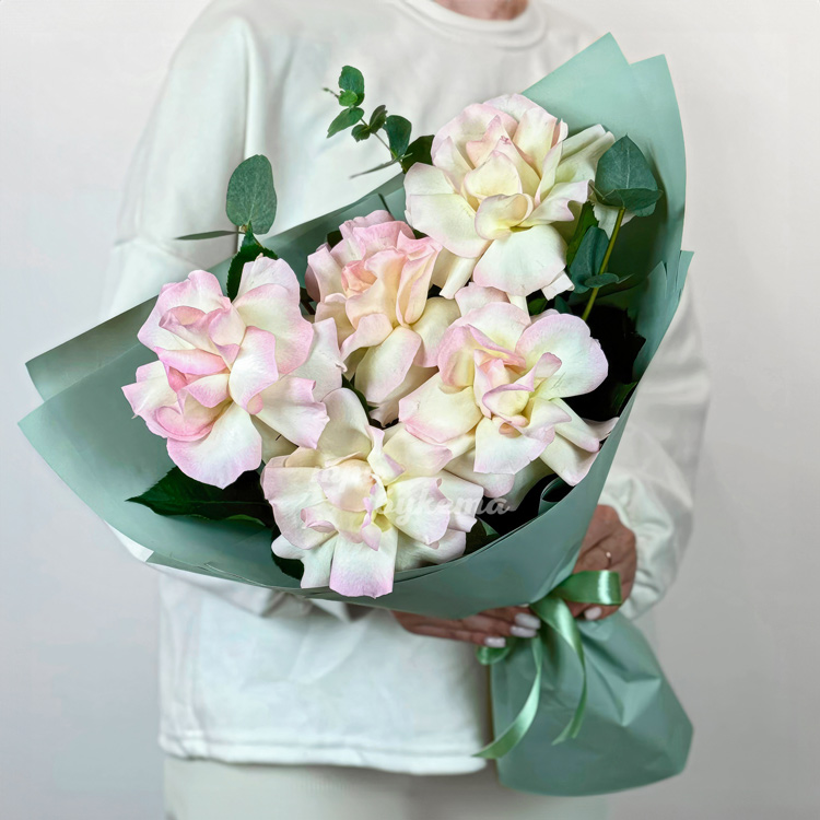 Букет из 5 нежно-розовых французских роз