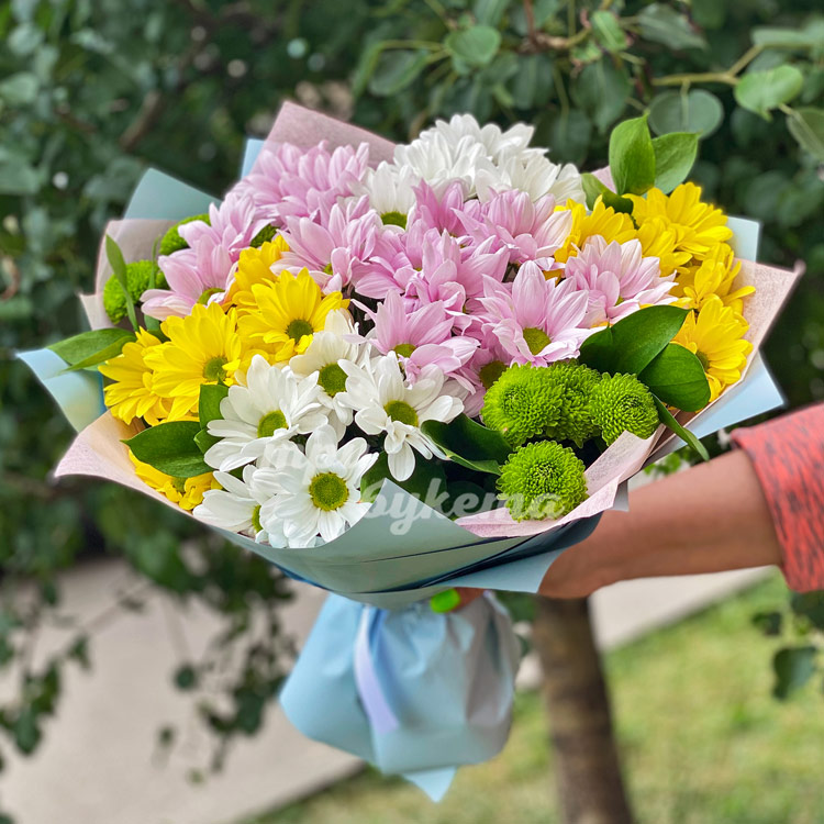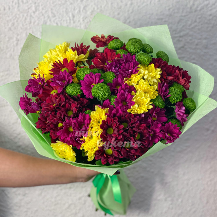 Букет из 9 разноцветных хризантем