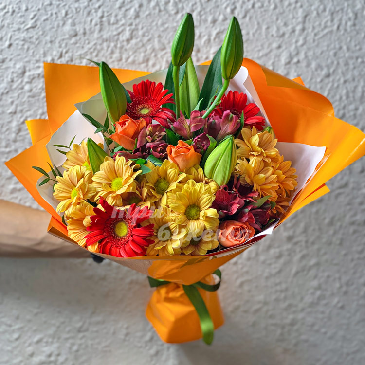 Букет из хризантем, гербер и лилий