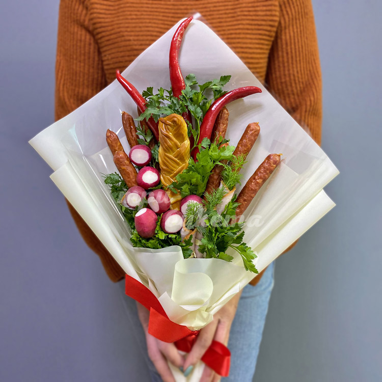 Букет из колбасок, сыра и редиса