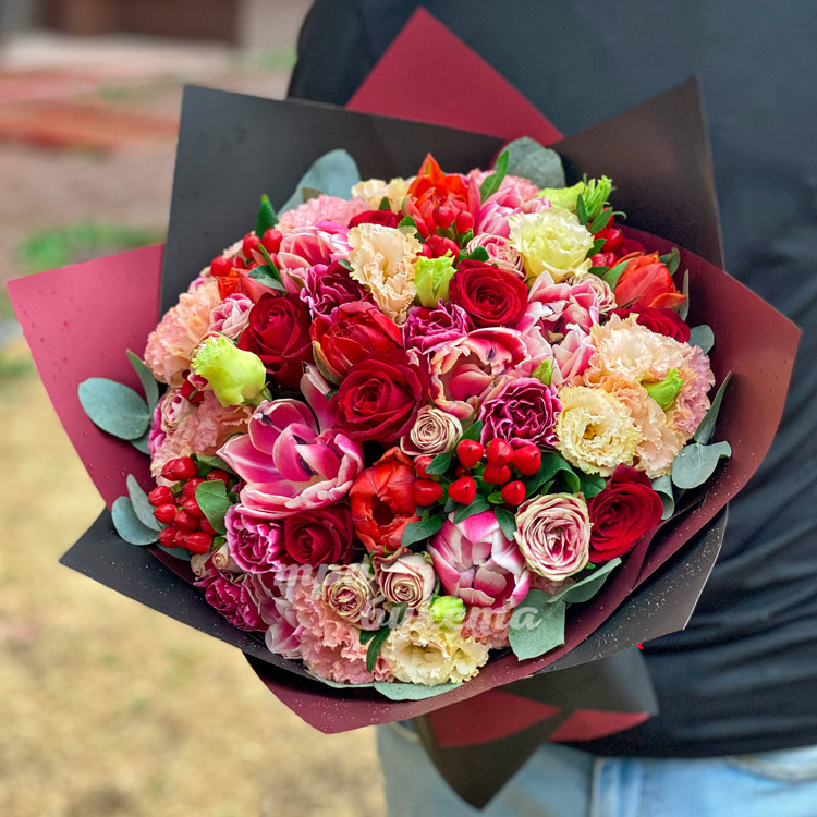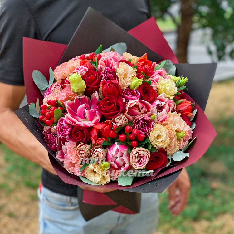 Букет «Красные и розовые цветы»