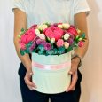 Коралловая гортензия с гипсофилой в коробке