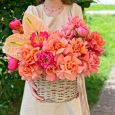 Коробка синих гортензий и розовых роз
