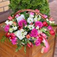 Корзина кофейных роз, эустом и гвоздик
