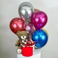 Набор из мягкой игрушки, конфет и 15 белых роз