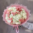 Синие гортензии и розовые гвоздики
