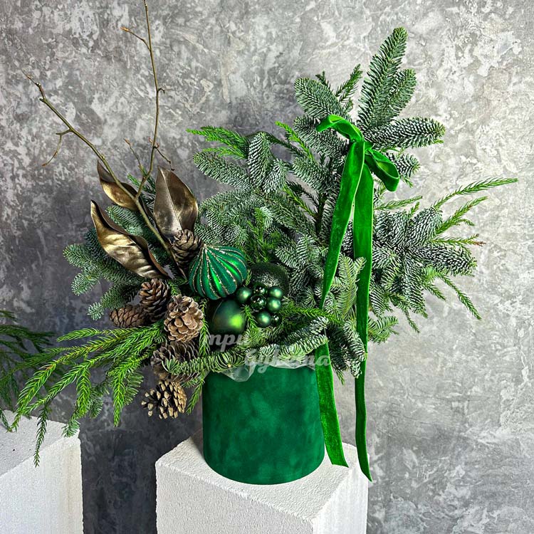 Зеленая бархатная коробка на новый год