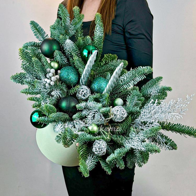 Зеленая новогодняя композиция в коробке
